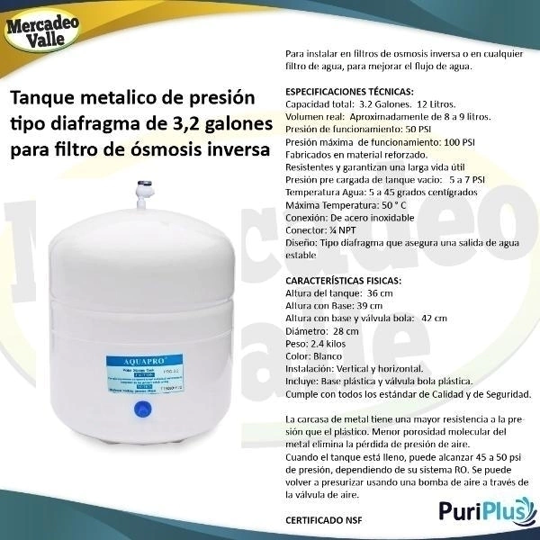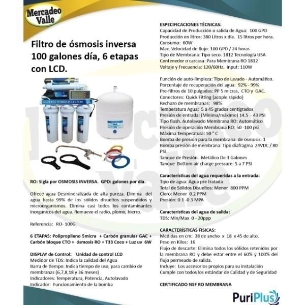RO: Sigla por OSMOSIS INVERSA. GPD: galones x día.